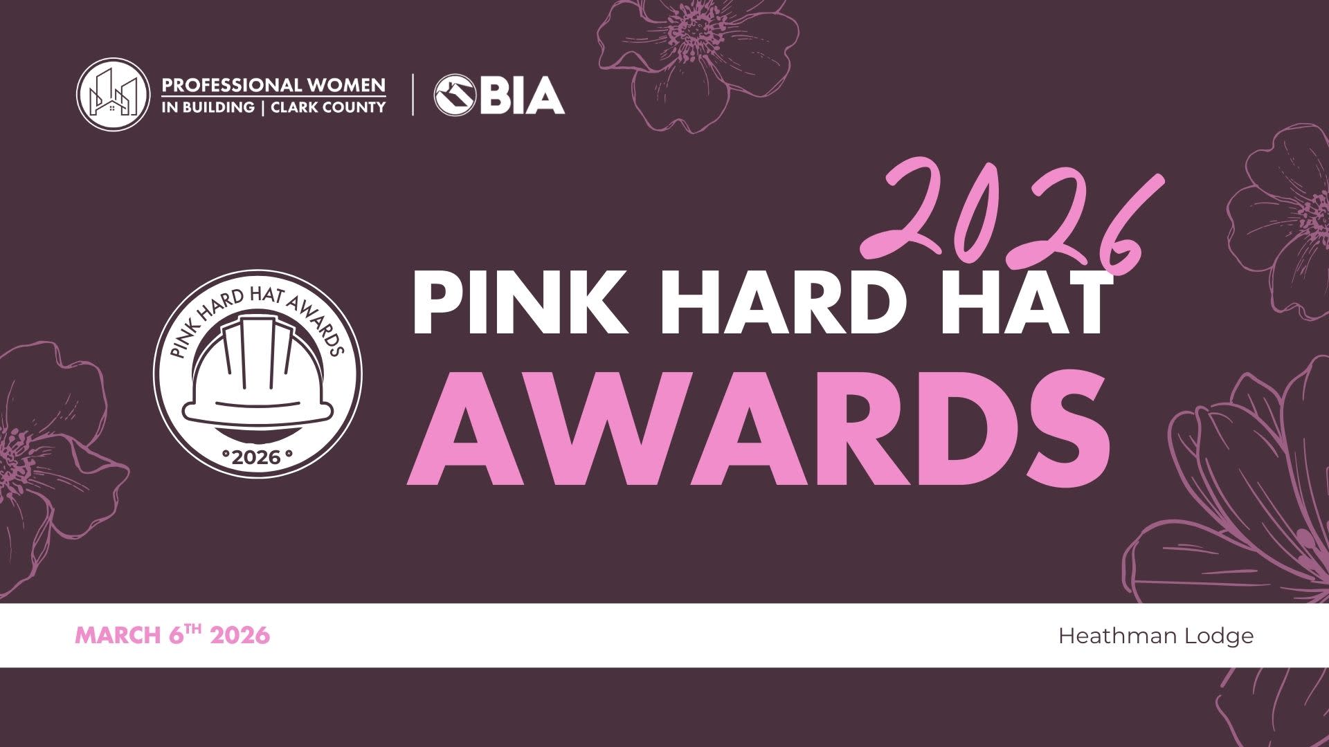Join us for the 2026 Pink Hard Hat Awards on March 6th at the Heathman Lodge. The evening will include a social hour from 5 to 6:30 p.m., followed by dinner and the awards presentation from 6:30 to 8 p.m., including winner tributes.